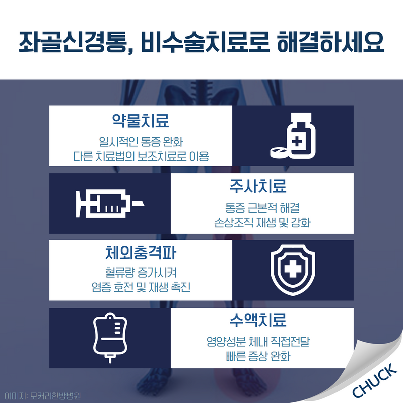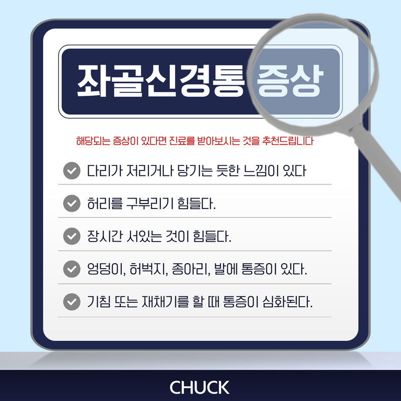 몸은 독립된 구조가 아니라 유기적 결합이라고 할 수 있다. 관절 주위에 위치한 인대 또는 근육은 온도 및 환경 변화와 같은 외부 요인으로 인해 정상적인 수축 및 운동 범위를 초과합니다. 뼈와 뼈의 마찰을 줄이고 부드러운 움직임을 담당하는 관절이 제 기능을 하지 못하면 이 부분이 경직되어 무릎, 골반 등 여러 부위에 부담을 줄 수 있습니다. 연골에 부담을 주는 등 온갖 불편함을 유발한다. 그 중에서도 허리부터 꼬리뼈, 엉덩이, 다리까지 따끔거림이 계속된다면 대전연합병원에 내원하셔서 좌골신경통의 원인을 찾아보시는 것이 필요합니다. 골반과 고관절 주변 근육의 이상으로 신경이 눌리면 이러한 증상이 나타날 수 있습니다.
