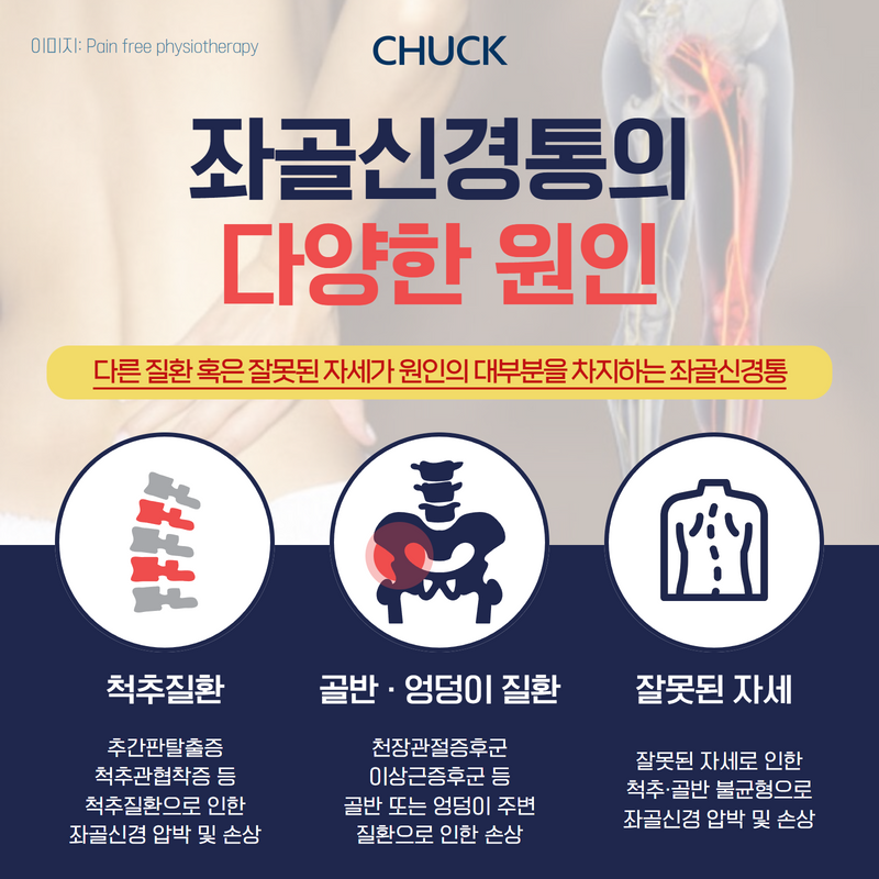 좌골신경통은 대개 잘못된 습관과 자세가 원인이라고 말씀드릴 수 있습니다.