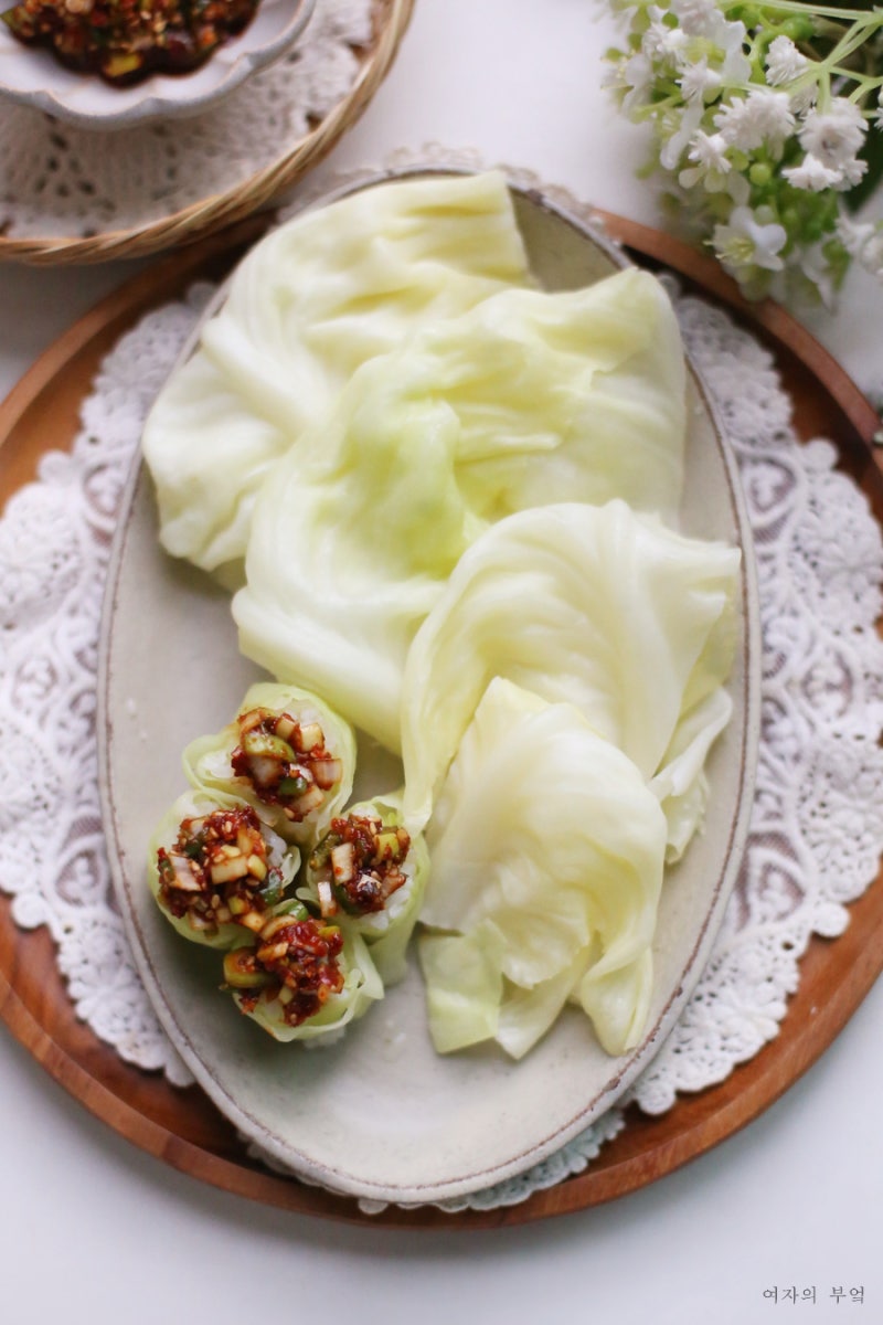 삶은 양배추 삶은 양배추 찐 양배추 소스