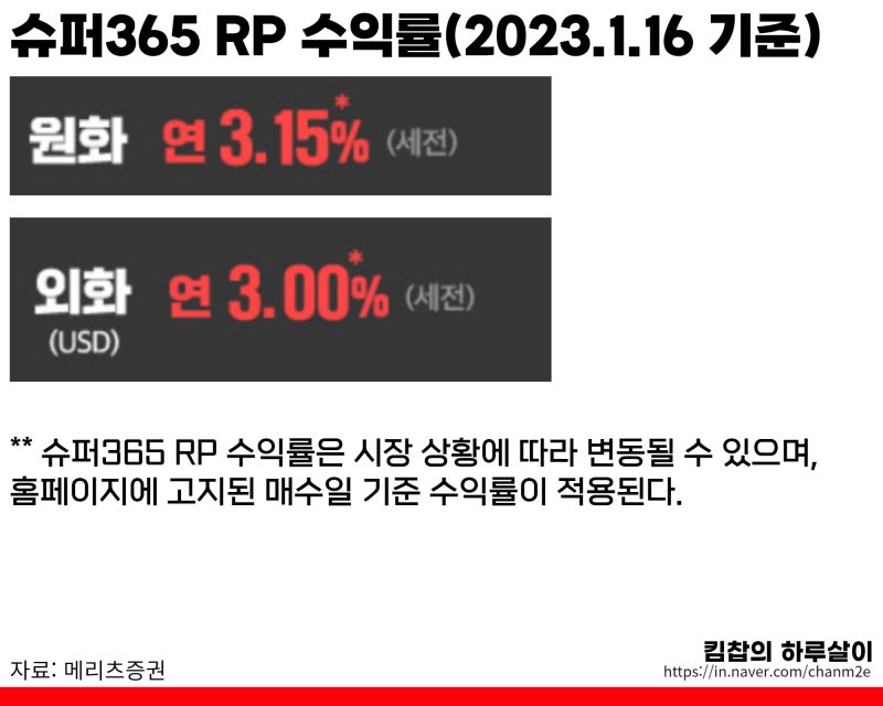 참고로 RP수익률은 홈페이지에 공지된 구매당일수익률 기준입니다.
